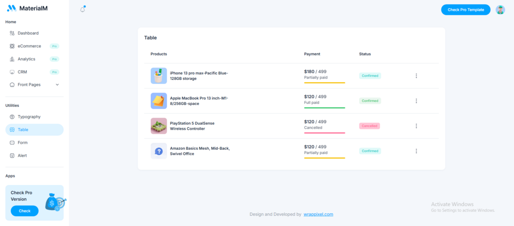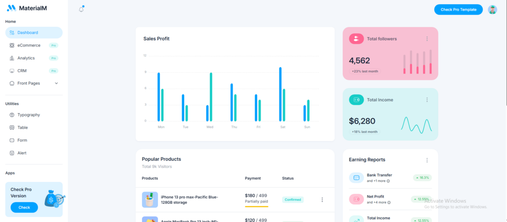 Perfect for startups, internal tools, or SaaS dashboards, MaterialM comes with a set of pre-built pages and essential UI elements like charts, tables, and forms. It’s optimized for performance, fully responsive across all screen sizes, and easy to customize thanks to the modular Tailwind utility classes. Whether you're prototyping or launching your next product, MaterialM gets you up and running — fast, and for free.