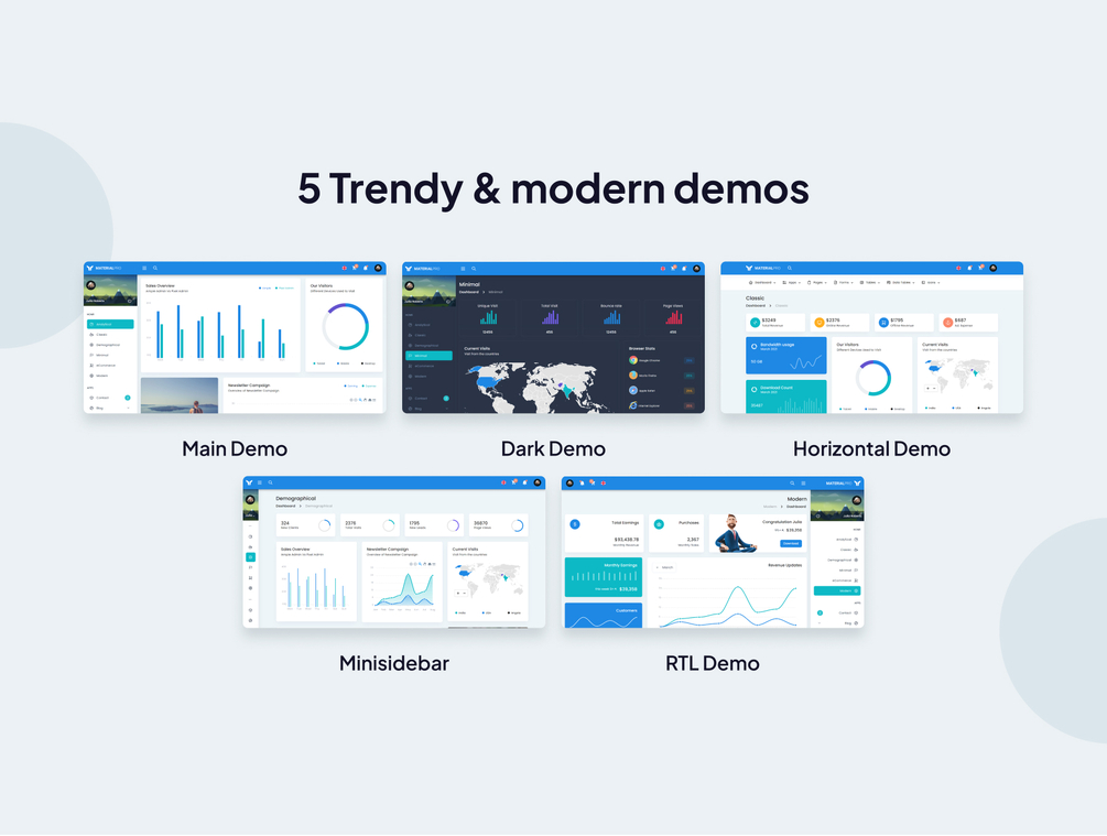 Checkout Live PreviewMaterialPro NuxtJs Admin Template offers a variety of customizable templates and features, such as dynamic dashboards, a comprehensive UI kit, and pre-built applications. It is designed to be user-friendly and to grow with your project. Some highlights of the product include five unique demos, PSDs, Figma for dashboard pages, and dark and light sidebar themes.