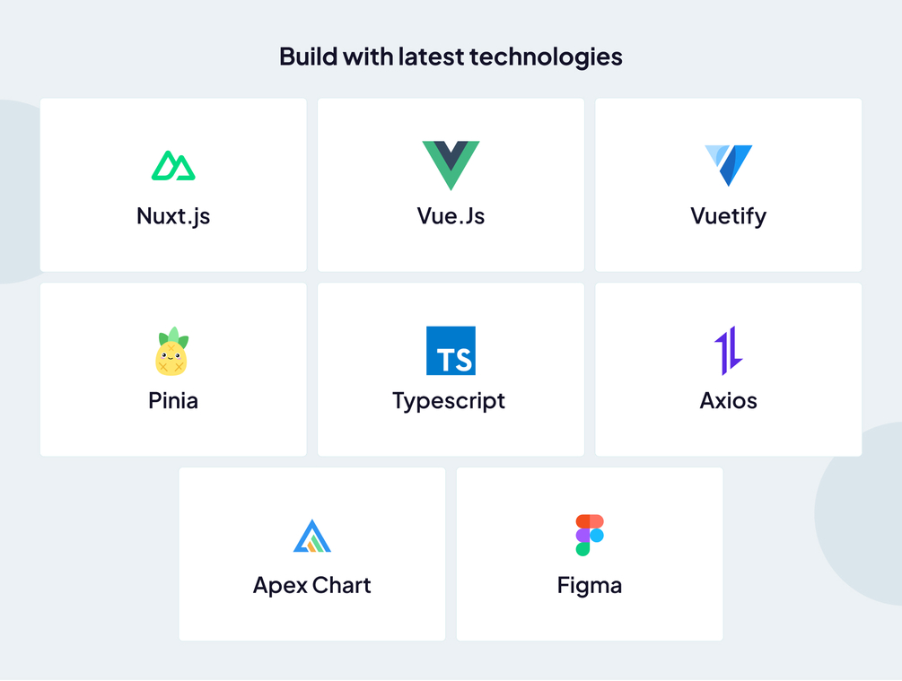 Our Nuxt.js Admin Dashboard Templates are pre-designed, ready-to-use templates that accelerate the development of complex web applications.