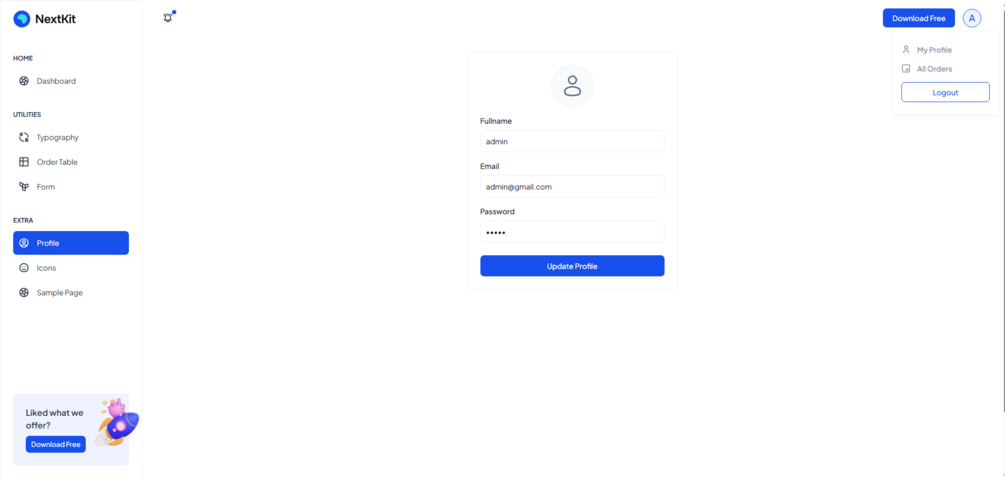 NextKit Free Admin Panel with Supabase & MongoDB is a modern developer-first template built using Next.js, designed for those building real-world full-stack applications. Whether you're working on internal dashboards, SaaS backends, or admin interfaces, this template gives you a clean, responsive, and ready-to-use layout that saves you days of dev time.