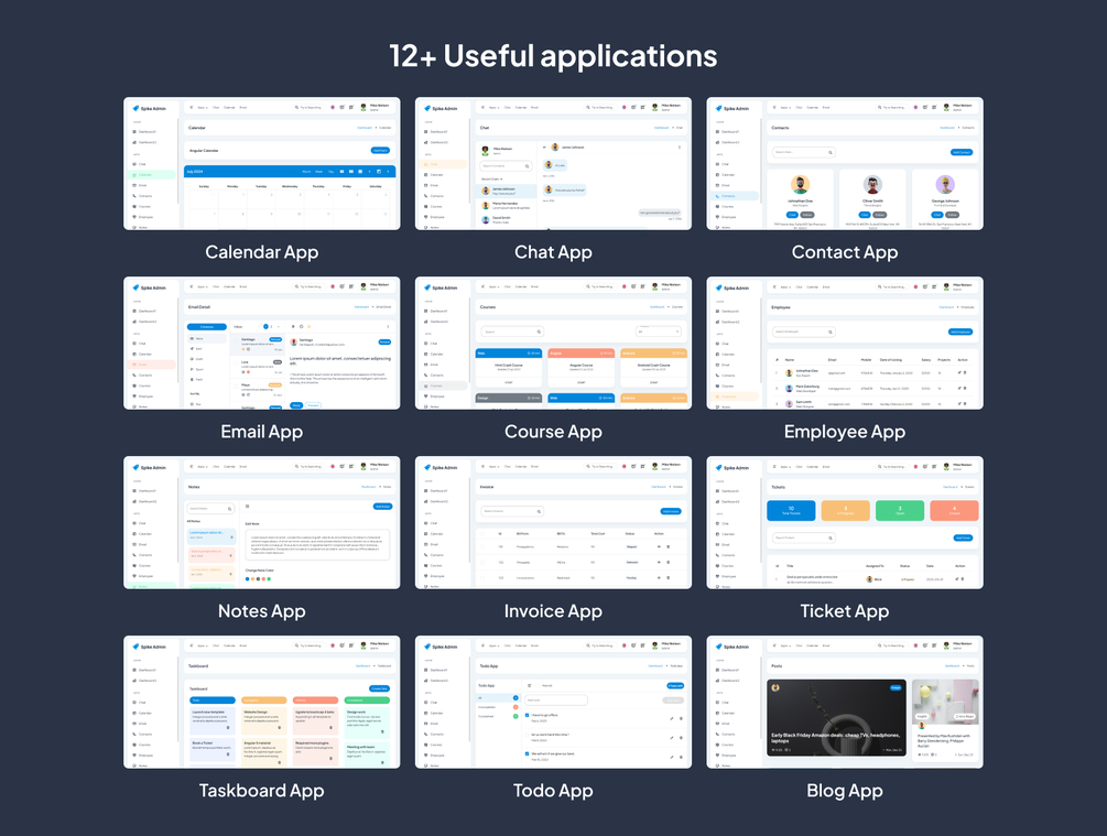 Tailored for diverse industry needs, this template is your partner in creating exceptional web experiences. Embrace innovation and step into the future of web administration. Users highly praise Spike Angular for its ease of use and robust features. With 12 ready-to-use applications, including Calendar, Chat, and Invoice, Spike Angular is designed to cater to all your administrative needs.