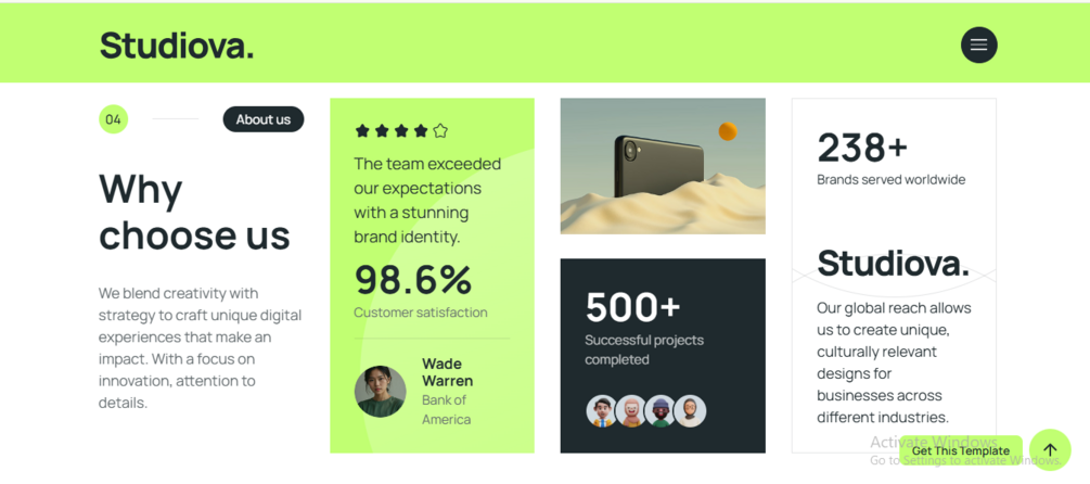 Whether you're building a landing page or a full site, Studiova makes sure your content looks great on all devices. Its responsive layout, smooth animations, and sharp UI ensure your audience stays engaged. You’ll save time, look more professional, and deliver a better user experience instantly.