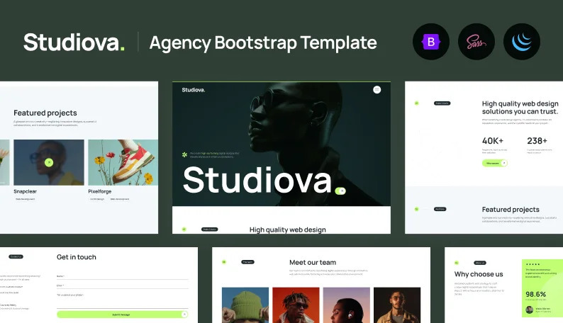 Studiova is a sleek and modern Bootstrap template crafted specifically for agencies and business websites. It comes with professionally designed page templates that help you launch your website faster and with less effort. The design is clean, intuitive, and built to impress from the very first scroll.
